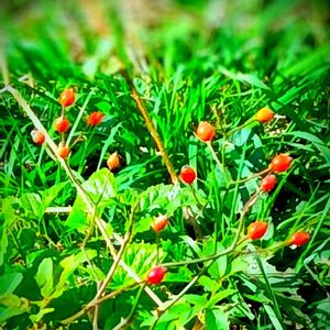 🟢グリーンの中の🔴レッド…12月になりましたけど春のように緑一色の中に赤い実が😀…時々見てはいるのですけど調べても名前が😣😞でした。 暖かい日や暑い日が長く続いていたぶんこの2〜3日の朝晩の寒さは厳しいです😞 いつもありがとうございます🙇🎶