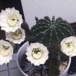 道の通り際に有るお花の写真を撮っていたら 若いお兄さんが声を掛けて来たので、グリーンスナップの話しをしたら家の裏側に多肉植物が一杯有るよと案内して下さいました。その一部です。「サボテン」の 鉢植えが何個も有り種類は一つです。これら鉢植えは皆、別々です(一見同じ物を組み合わせたの いえいえ違います)サボテンの名前は何て言うのか解りませんでした。解る方教えてください。 お兄ちゃんシリーズ パート1️⃣