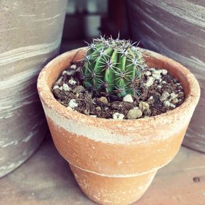ちょっと良い感じの鉢があったので、プラ鉢組みを植え替えました🌵🎶 made in italy の4号鉢(^з^)-☆