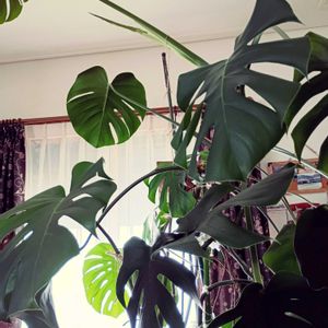 おはようございます。 モンステラさんほぼ全開です。 いい感じの切れ目🎵🎶💚💚 (*´∀`*)°:+*・.☆.。.:*・゚