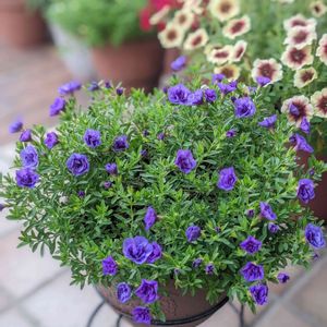 スーパーベル ダブルブルー お盆明けに切り戻しして1ヶ月、咲いてきました🌼 茎が伸びてわさわさしています😌 同じ時期に切り戻ししたミリオンベル ブルーは咲きません💦咲くスイッチみたいなものが品種によって違うんでしょうか。 同じように育てている兄弟の性格が全然違うように😁 今年8号鉢で育てたカリブラコア2つですが、初夏からは6号鉢のペチュニアの方が良く咲いてくれました。来年の糧にしたいと思います〜 今日は洗濯日和になりそう✨