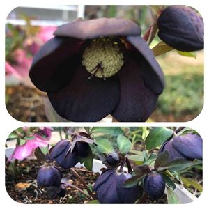 クリスマスローズ‘ブラックパール’ 咲きました♪ 小さいけど、10個の花をつけてます。 みんな咲いてくれるかな🤔