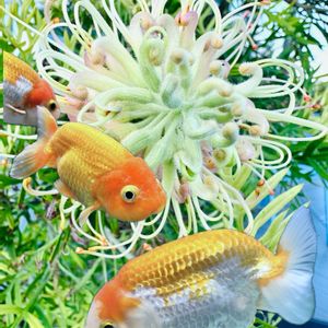 🏷トトの日 昨日訪れた西武屋上庭園内のランチュウとグレビレアの合成写真です。 ランチュウは昔飼っていたのでやっぱり可愛い〜💕 iPhone、ios17からステッカー機能で合成写真が簡単に作れるようになって٩(〃._.〃)ว