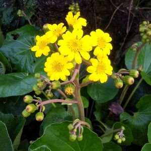 沖縄ではツワブキが咲き始めたばかり、とっても綺麗に咲いていました✨💛💚 ①②③中城城跡にて…ソテツの前で可愛いく💛 ④⑤修復工事中の首里城の石垣にて…✨ 今年はいろいろな所でツワブキのお花を見ることが出来ました。