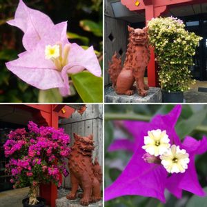 沖縄で良く見かけたのは、やはりブーゲンビリアとハイビスカス💕🌿 ①首里杜館の前のシーサーとブーゲンビリア🩷 ②ハイビスカス…我が家は寒冷地なので育てたことありませんが、、、華やかですね〜🌺
