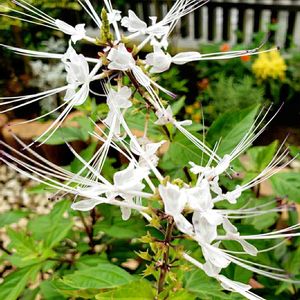 ネコノヒゲ🐈 ネコノヒゲの特徴 はピンと上を向いた長い雄しべと雌しべがネコの髭を連想させることから名前がついています。 シソや、サルビア類の草姿によく似ています。 花は真っ白と、薄紫がありますよ。 暑さに強くて寒さに弱いです。