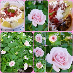 名もなきミニバラ🌹 お買い得品で買ったミニバラ🌹かなり経つけどポツポツとしか咲かなかったのが、こんな時期に花がたくさん咲いてくれてます‼️ 雨続きでちょっと憂鬱になりそうな気持ちを払拭してくれます‼️ そして今日も四季なりイチゴデリーズとミントを使ったフルーツたっぷりのプリン🍮ほろ苦いカラメルが、たっぷり‼️ 真夏にイチゴの贅沢気分✨