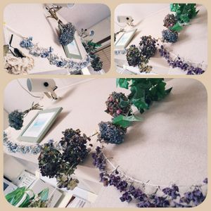 吊るすだけドライフラワー‼️ アジサイいっぱい❤️ 今日は誰かの誕生日❔ 毎日がお祝い🎁🎂みたいになってます~😅 あんな大きかったのが水分抜けて小さくなるので😅付け足しつけ付け足しして、この大きさです‼️ 何種類のアジサイがあるでしょう~😅 たぶん10種類位ミックスされてます‼️