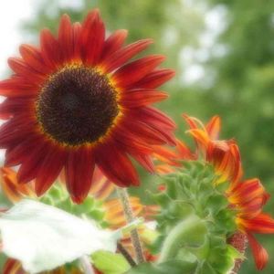 ひまわり🌻 オレンジ サンの葉っぱだけ 遊び心でちょっと色を脱いてみました🤗