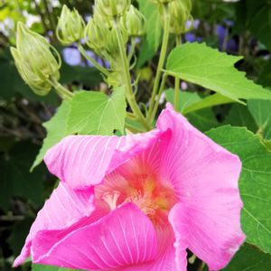 🤍 フヨウ(芙蓉) アオイ科 フヨウ属 葉は互生し、表面に白色の短毛を有し掌状に浅く3~7裂する 7~10月にかけてピンクや白の花をつける。花は他のフヨウ属と同様な形態で花弁は5枚で回旋し椀状に広がるそうです