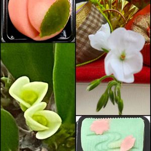 練りきり「芝桜」🌸の試作。 お店の人に聞いたら緑の方が良いとの事です。 可愛いと好評でした😊