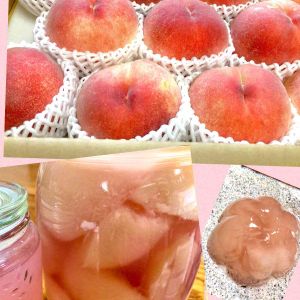 そして、桃の実🍑🍑🍑🍑🍑🍑🍑 夏、山梨から送られてくるのは、甘くて硬い桃🍑 柔らかい桃🍑ももちろん好きだけど、まるでリンゴのようにシャキシャキした桃も美味しいんです😍✨ 桃🍑は大好きだけど、アレルギーで少ししか食べられない娘には、コンポートにしたり、ゼリーにしたり、で😋