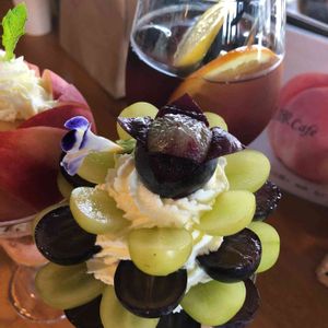 笛吹市 ラペスカの 葡萄パフェ🍇とピーチジュエル🍑 美味しかった〜♪