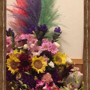 まとまりが今ひとつかな💦 秋を意識したつもり🎶 夏の名残りのヒマワリ🌻