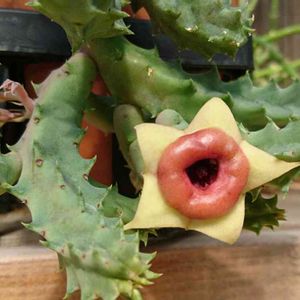 ガガイモのお花が咲いたので♡ huernia insigniflora (フェルニアインシグニフローラ ) 読めなくて(⌒-⌒; )グーグル先生に聞きました! でもドーナツみたいなお花のはずなのに違うwwwwww あなたは誰??(笑)
