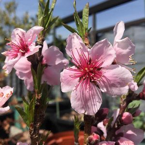 桃🍑の花 家で桃が収穫できたらいいな〜と思い、苗木を昨年購入しました。 濃いめのピンク色がとってもキュートです💓💓💓