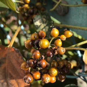 🌿ヘクソカズラの実 又は サオトメバナ (アカネ科 ヘクソカズラ属) と下の葉 🌳シャリンバイ🌳 (バラ科 シャリンバイ属) シャリンバイの上に ヘクソカズラが可愛く実を付けています😊💕 今年は、草刈りが一回少なかったようで シャリンバイの垣根に ヘクソカズラ タンキリマメ ノブドウ🍇 ヤブカラシ スズメウリが 競って這っていました。 こんな流れるような…実🎶💕 いつもは、もっとモシャモシャっとたくさん実が付いてる。 👀💰💰💰こんなお宝見たことない~💓😃ザックザク💰💰💰 次の週には、やはり草刈り✂️お疲れ様です🙏 しゃぁ~ない。長いこと楽しませて貰ったもんね😆 来年も 草刈正雄さんに お願いしよっと。草刈り一回減らしてねって🎵←勝手に草刈りする人は(勝手に草を刈ってないよね💦お仕事です。)私が勝手に呼んでいるだけ🙇 これでちゃんと通じる😆😆😆 実をネックレスにしても可愛いね💓ツヤツヤしてて。琥珀色 合う服ないか~💦見るだけがいいな。 11/23 そうそう 8/3に🌸お花投稿している時には お花のケモケモ何ざんしょ❓とハテナマークでしたが 虫さんのために(🦋🐝など)。 🐜蟻さんに蜜を取られないようにガードしているそうです。 成る程✌️勉強になった。 お花🌸何度見ても 繊細。 大好き💕