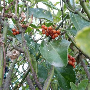 マサキにツルが絡まって綺麗な実が付いていました🎵 ヘクソカズラの実でしょうか⁉️