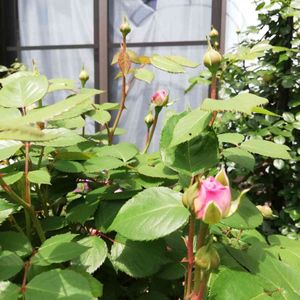 少しずつ、ちらほらと、せっせとハダニの処理をする頭上で優雅にバラさんは咲いてます🙂