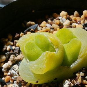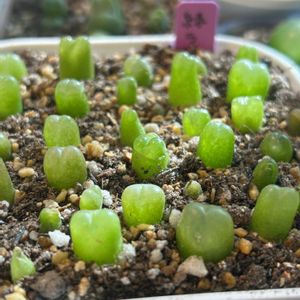 今年群仙園さんでお迎えしたリトープス⑩…とその他 C388 Speckled Gold(黄碧瑠璃:碧瑠璃系) …ブロワーで微塵を吹き飛ばすの忘れたまま撮影してしまった😅💦 碧瑠璃系が好きなので、我が家でまだ育てていないものをお迎えしました うまく育つと良いのですが、どうなる事やら…😓 さて、今年群仙園さんからお迎えしたリトープスは以上ですが、実は今まで敬遠していたratum ex. EEF(ラツム:チェシレ-フェレス節)とburger(ブルゲリ)もお迎えしました!ででん‼ 園主さんにお聞きしたら、「○○より育てるのは楽だよ〜」と言っていたので、「きっとラツムやブルゲリの上をいく育成が超絶難しいものがあるんだな〜、それならこの2つは育てられそう」と思い切ったのですが、○○って育てたこと無い(○○がどんな品種か教えてもらったけど忘れてしまい💦)😓 とりあえず、「大丈夫かなぁ?」とドキドキしながら育てたいと思います😅