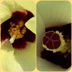 「ワタ(綿)」 別名 コットン、ツリーコットン ふわ〜っとオクラに似た花から、ギューっと詰まったコットンボールができるなんて…不思議だ✨💕 綿花、花のようにも見える。 高温多湿を好むとあるが、開花から収穫期は乾燥が望ましいとある。 2022.11.9撮影