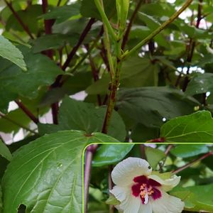 雨の中綿の花が咲いてました🤍 背景はローゼルです💗 待っているのに花芽がありません🙄 綿の花とローゼル良く似てます😳 🏷ローゼルを楽しむ会参加します💕 綿♡ アオイ科 ワタ属 ローゼル♡ アオイ科 フヨウ属 ハイビスカス♡ アオイ科 フヨウ属