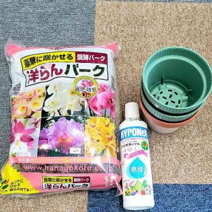ハイポネックス、洋蘭バーク 9月に花芽を付けるために液肥購入しました! ついでに人から貰った胡蝶蘭を植え替えするためのバークと鉢も購入(๑•̀ㅁ•́๑)✧