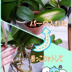 胡蝶蘭!再度植替え!! 傾いてるのずーと気になってて、葉っぱが大きくなってきたから重くなって最近より倒れてきました💦 今植替えなんてしたら根っこにダメージがかかるから、、、迷ったけどしました‼ 根っこが予想以上に沢山生えてて嬉しかった(>ω<)✨成長が見れてよかったぁ、、、(泣)