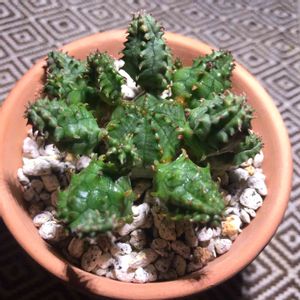 ユーフォロビアグロボーサ😁 おもしろいカクタスさんを見つけました 韓国鉢に植え替えて満足🤗 やっと韓国鉢の出番がきました😊