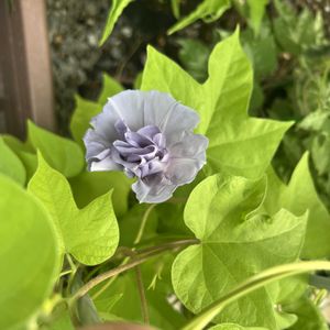 今日はこの色が咲いてます 変化朝顔 黄並葉葡萄鼠牡丹咲 副産物がたくさん分離してます