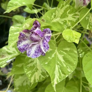 ちょっと大きめの花が咲きました 10cmくらいかなあ? 変化朝顔 黄葉青石畳吹詰牡丹咲 ちゃんと切れず、畳まずの花です みんな調子悪いです😭