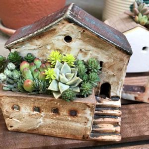 陶芸家さんとTOKIIROの個展「陶と季展」が近所で毎年開かれています。 その中での家の器に多肉が植えてある作品にいつも目を引かれます❤︎ うちは置き場がないので小さめのお家の作品をお迎えしちゃいました✨