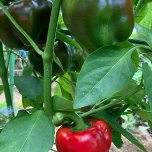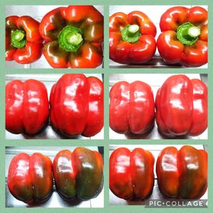頭とお尻がまだちょっと黒っぽいグリーンなので、どうしようか迷ってたパプリカを2個収穫しました❤️❤️😅 3個がぎゅうぎゅうにくっ付いてて、あまり日も当たらなさそうだったので思い切って🤣 ホントは真っ赤っかになるまで待ちたかったんですが😂