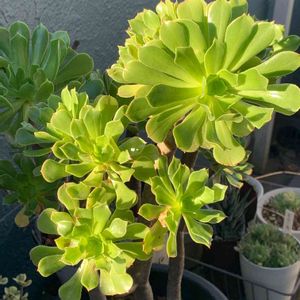 昨日多肉を見にいったら アエオニウムがたくさんいて 欲しかった夕映えと 初めましてのサンシモン買ってきました🎵 よくよく調べたらサンシモンって 黒法師のことみたいです💦 持ってるけど 売場にも黒法師で売られてるのがあったし 緑から黒になるって知らなかったので サンシモン=黒法師だとわからなかった😰 これから黒に変化するのが楽しみです❤ 変わるのは春から夏なのかな?
