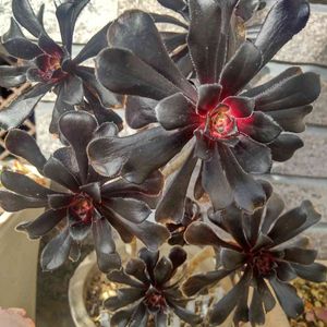 こんにちは☀️ 本日2枚目(๑>ᴗ<๑) tetecoさんの🏷ド真ん中の日🍀 アエオニウムでまとめてみたょ😆 黒法師の色がパッとしないけどね😣
