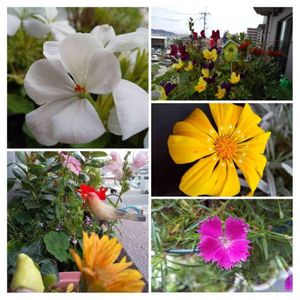 今朝のベランダ✡️🌱💮🧡💚💜❤️💙 🥀🌿💮花集め💛⚛️…🎀🍃