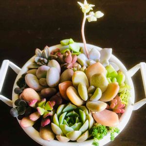 エケベリア属ティテュバンス錦 少し離れた園芸店でゲット👍 最近、癒し系というか乙女チックなpicが続いていますが、正体はオジさんです😅 忙しくなったり、ストレスがたまると どうしても癒し系へ行ってしまいます☺️ アガベと比べるとお安いということもありますが🤗