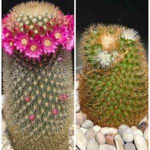 サボテン 松露玉 白とピンクの愛らしい花が 咲きました😍😍🥰