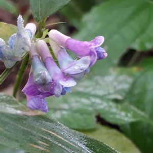 御岳山にて。 この日は曇り予報だったのに山では小雨。ガスがかかり視界は不良☔😵 最初はナンテンハギかと思いましたが…😅 この花、最初は濃い青紫や赤紫から徐々に薄くなるそうです。 虹色が美しい~💕😆