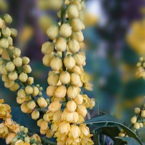 お散歩で見つけた ヒイラギナンテンの花 ワンとのお散歩で いろいろな お花に出会えます