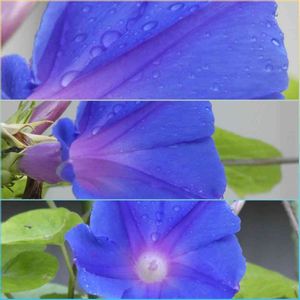 「琉球朝顔💙」33回目 〜オーシャンブルー〜 11日4つ(27.28.29.30番花)💗 12日2つ(31.32番花)💙 【今朝撮ったpics.】 前日咲いた4つが、花びらの色を変え夜通し咲いていました。