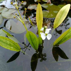 こんにちは(^^) メダカが喜ぶ〜🎵 ナガバオモダカの花が終わったと思ったら💦また咲いてくれました🎶🎵