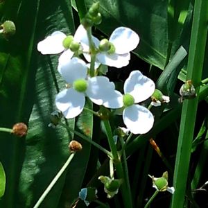 おはようございま〜す♪😊 •5月23(金) •杜の都 仙台 •日の出:04:19 •天気:☀️ •気温:11.0℃ •風:北北東1.5m/s *日の出時の気象です メダカビオトープから 🌿ナガバオモダカ(ジャイアントサジタリア)❀❀❀ 北アメリカ原産の水生帰化植物で雌雄異株、日本に生育するのは雌株のみ😲 白く清らかな花、シンプルな美しさです🌿🤍☺️💕 📖花言葉 「高潔」 ⚠️生態系を乱すので、野外に遺棄しないようにと環境省からの呼びかけが有るらしい🤔 📷:2025.5.10~19 今日もお元気で🤗