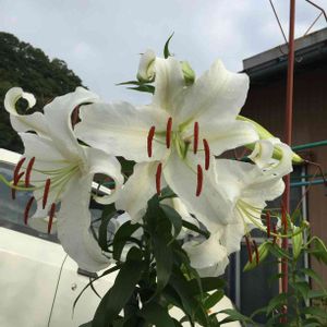 また朝の散歩道😁 🌸カサブランカ🌸かな❓ 芳しい香りに包まれて、足を止めウットリ😍✨✨