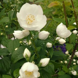 梅花空木が開き始めました。 晴れた日なら、香りも良いのでしょう。