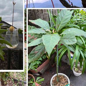 アボカド🥑兄弟🥑 4歳と1ヶ月半、これだけ違います❣️ いつかは実がなるのかなぁ🤣 桃、栗、3年~柿8年と言いますが➰ 🥑ちゃんは何年かかるのかな🎃