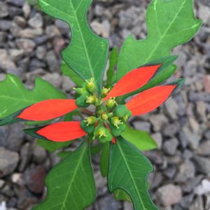 ショウジョウソウ 早口言葉に使えそうな名前ですねー😊 サマーポインセチアとも言いますが、こちらのほうが言い易いですね。 虫が付きにくい植物です。葉っぱを見ると、既に虫に食べられたフリをしているようにも見えます🧐 だから、虫が来ないのかなぁ🤔 不思議な形の葉っぱです🤣