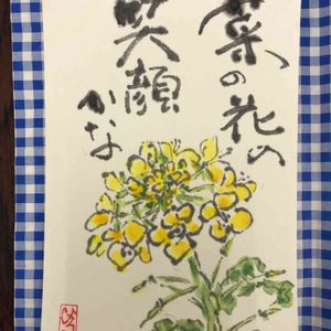 ※ 絵手紙49 菜の花💛 春が来ましたね〜♪ やっと暖かくなってきました〜 うれしいな〜♡︎ʾʾ 春の色は?といえば 黄色に黄緑でしょう! 即ち菜の花ですね 友人が 渥美半島・田原の菜の花畑に行ってきました🎶 と大はしゃぎのLINEを送ってきました 25ヘクタール(東京ドーム約5個分)1200万本の菜の花畑 圧倒です‼︎‼︎ 人の背丈程に伸びた菜の花が咲き乱れ、春風にゆらりゆらりゆらり〜 📣そこは〜 天国ですか〜? 菜の花ぜんぶが 笑顔で答えてくれました💛