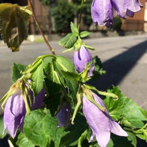 💜紫ホタルブクロ 園芸種の紫ホタルブクロ 挿木をもらいました 一枝と葉っぱが一枚だけ 状態からみるみるどんどん育ち また花が咲きました うれしい¨̮♡︎〜んだけど… 花の色が薄くなり 紫から藤色になってます