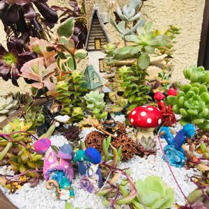 ✨フェアリーガーデン✨🧚♀️🧚♂️ 作ってみました🥰 前にイベントでmoongardenさんのトムテ 三つをgetしたのと、その時娘たちが作ったキノコの🍄お家を四つ置いてみました😊